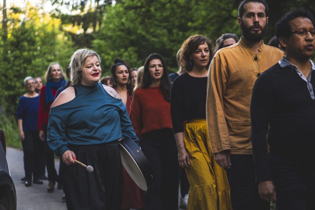 À travers l’exercice de la «circle song» ou bien d’arrangements de titres pop, le chœur dévoile le «corps instrument» toujours accompagné par l’expérience et l’écoute de leurs chef.fes et directeurs.trices artistiques.